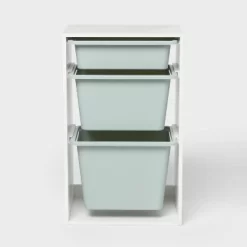 Keep your kid’s room organized with the help of the Multi-Bin Storage from Pillowfort™. This cabinet comes with three bins in three different sizes to give them ample space to hold their toys, stuffed animals and more. Designed in a rectangular shape, the bins are easy to pull out and carry around. This vertically-aligned cabinet comes in a cream color with the bins in smoke green, making it easy to incorporate into their room regardless of its current aesthetic.